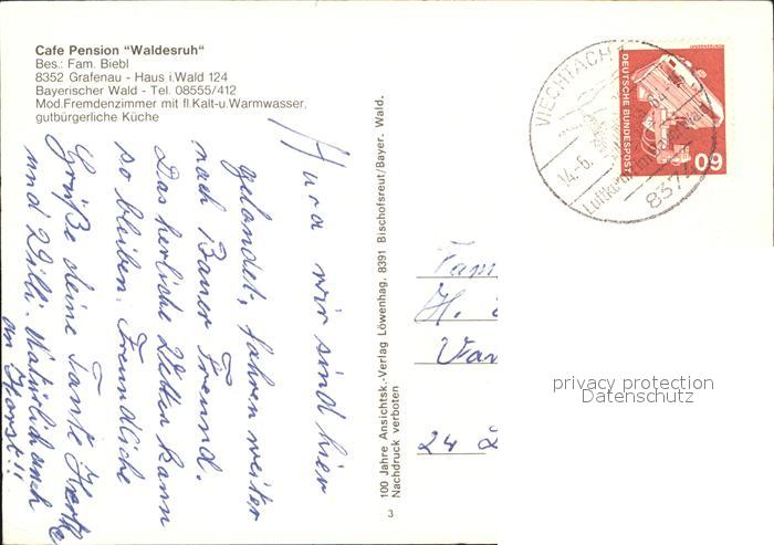 72514298 alte Postkarte Grafenau Niederbayern Cafe Pension Waldesruh postalisch gelaufen Erhaltung siehe scans KatCode: 11110009272120