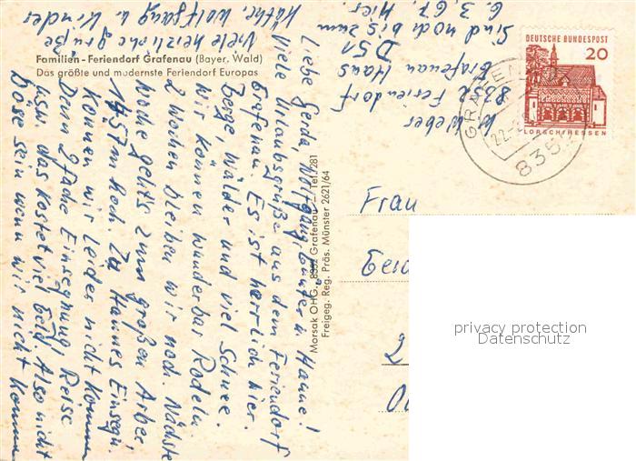 72780845 alte Postkarte Grafenau Niederbayern Familien Feriendorf Bayerischer Wald Fliegeraufnahme postalisch gelaufen Erhaltung siehe scans [FriedD77] KatCode: 11110009272120