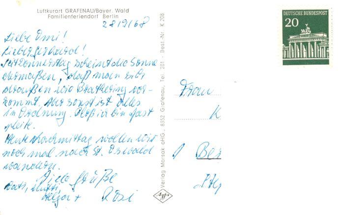 73914747 alte Postkarte Grafenau Niederbayern Familienferiendorf Berlin Panorama postalisch gelaufen Erhaltung siehe scans [FriedD77] KatCode: 11110009272120