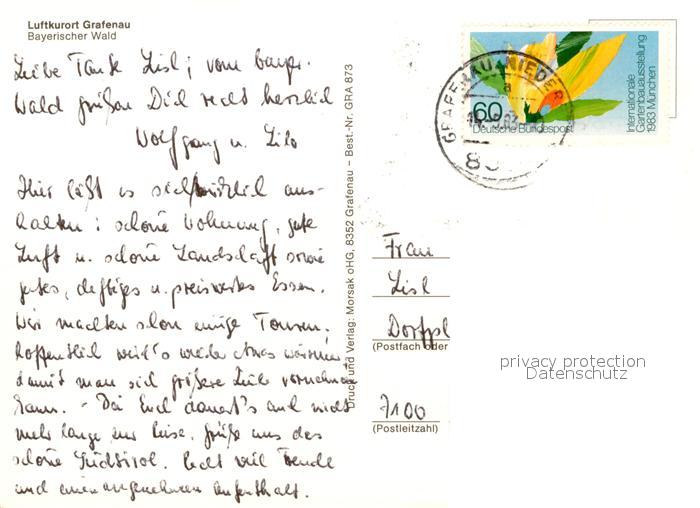 73176173 alte Postkarte Grafenau Niederbayern Fliegeraufnahme postalisch gelaufen Erhaltung siehe scans [NatalD47] KatCode: 11110009272120