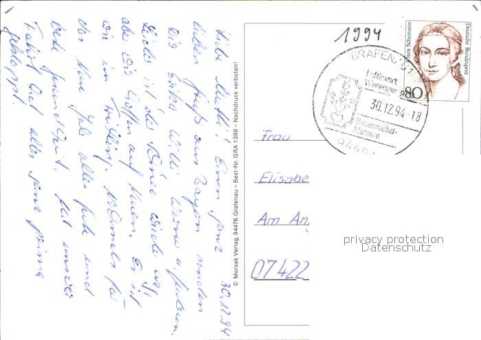 72567453 alte Postkarte Grafenau Niederbayern Fliegeraufnahme postalisch gelaufen Erhaltung siehe scans [LiesaD40] KatCode: 11110009272120