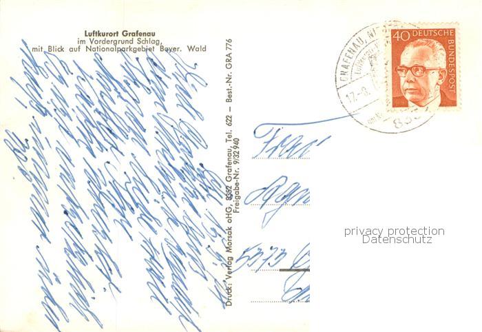 73766961 alte Postkarte Grafenau Niederbayern Fliegeraufnahme mit Blick auf Nationalpark Bayer Wald postalisch gelaufen Erhaltung siehe scans [FriedD77] KatCode: 11110009272120