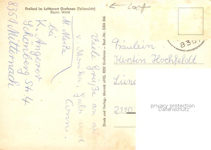 73611445 alte Postkarte Grafenau Niederbayern Freibad postalisch gelaufen Erhaltung siehe scans [WerneD78] KatCode: 11110009272120