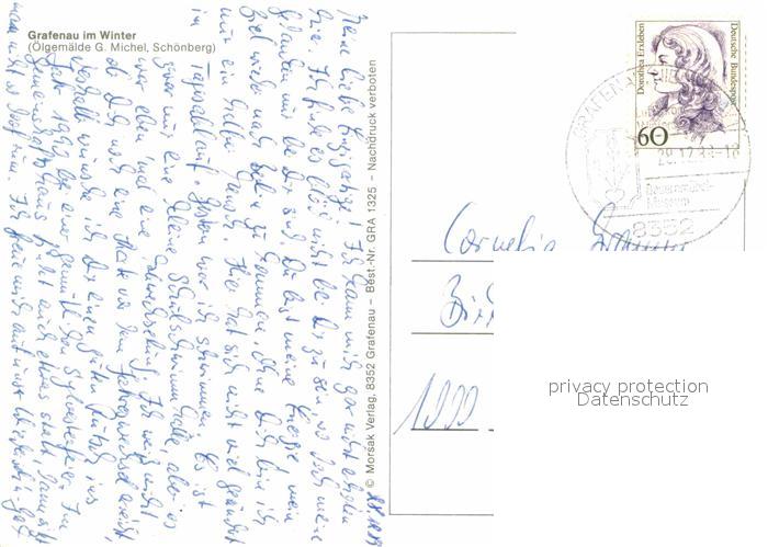 72907452 alte Postkarte Grafenau Niederbayern Gesamtansicht im Winterkleid postalisch gelaufen Erhaltung siehe scans [AndreD76] KatCode: 11110009272120