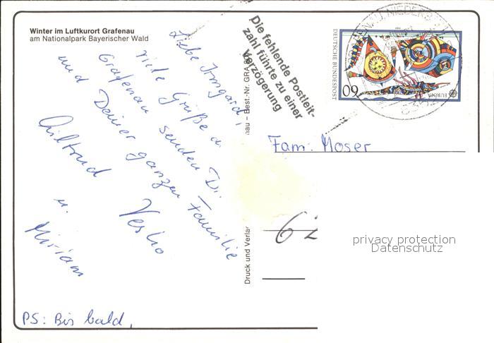 72417098 alte Postkarte Grafenau Niederbayern Gesamtansicht postalisch gelaufen Erhaltung siehe scans KatCode: 11110009272120