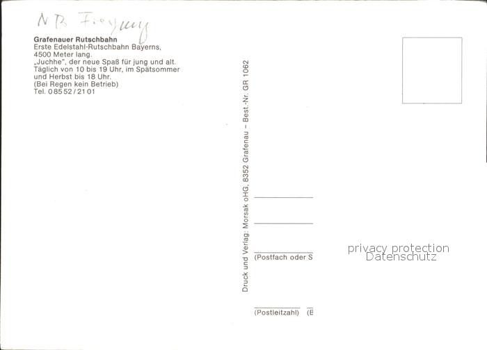 72229589 Grafenau Niederbayern Grafenauer Rutschbahn postalisch nicht gelaufen Erhaltung siehe scans KatCode: 11110009272120