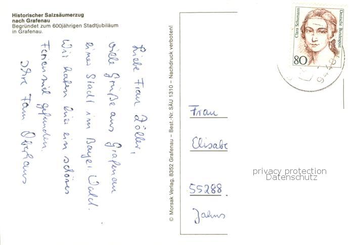 73759944 alte Postkarte Grafenau Niederbayern Historischer Salzsaeumerzug nach Grafenau Details postalisch gelaufen Erhaltung siehe scans [FriedD77] KatCode: 11110009272120