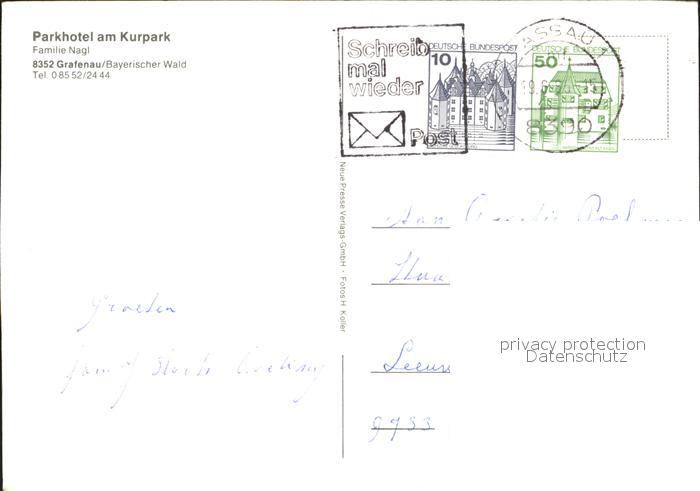 72285292 alte Postkarte Grafenau Niederbayern Parkhotel am Kurpark postalisch gelaufen Erhaltung siehe scans KatCode: 11110009272120