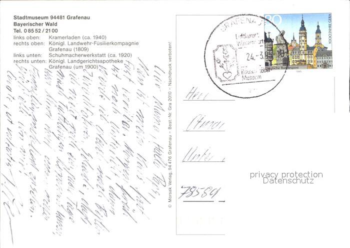 72921273 alte Postkarte Grafenau Niederbayern Stadtmuseum postalisch gelaufen Erhaltung siehe scans [LiesaD40] KatCode: 11110009272120