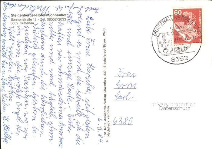 alte Postkarte Grafenau Niederbayern Steigenberger Hotel Sonnenhof postalisch gelaufen Erhaltung siehe scans
