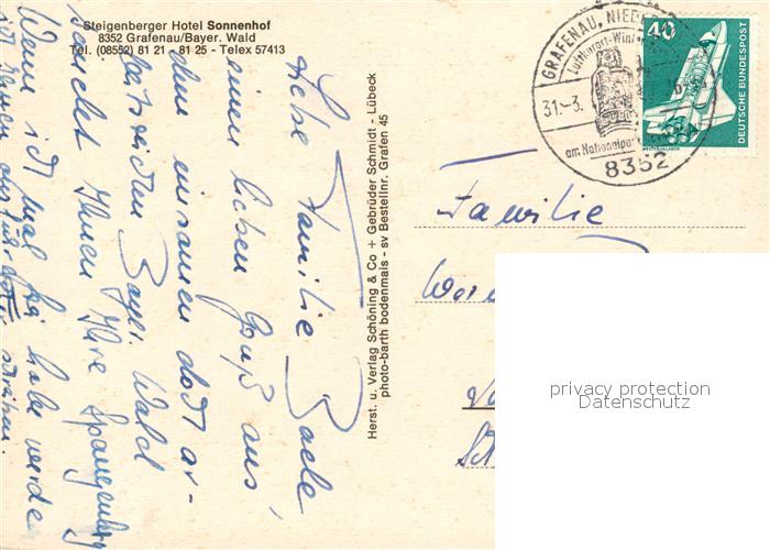 73124336 alte Postkarte Grafenau Niederbayern Steigenberger Hotel Sonnenhof Restaurant Hobelspan Hotelhalle postalisch gelaufen Erhaltung siehe scans [KathaD81] KatCode: 11110009272120