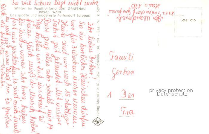 73331206 Grafenau Niederbayern Winter im Familienferiendorf Grafenau postalisch nicht gelaufen Erhaltung siehe scans [WerneD78] KatCode: 11110009272120