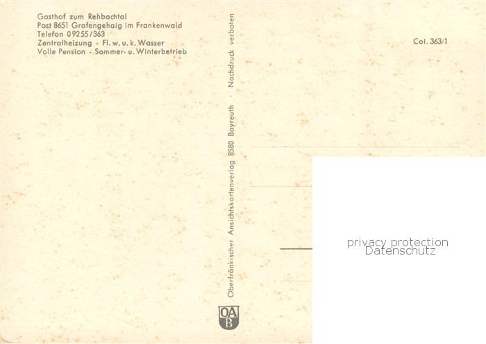 73780315 Grafengehaig Gasthof zum Rehbachtal im Frankenwald postalisch nicht gelaufen Erhaltung siehe scans [FriedD77] KatCode: 11110009477117