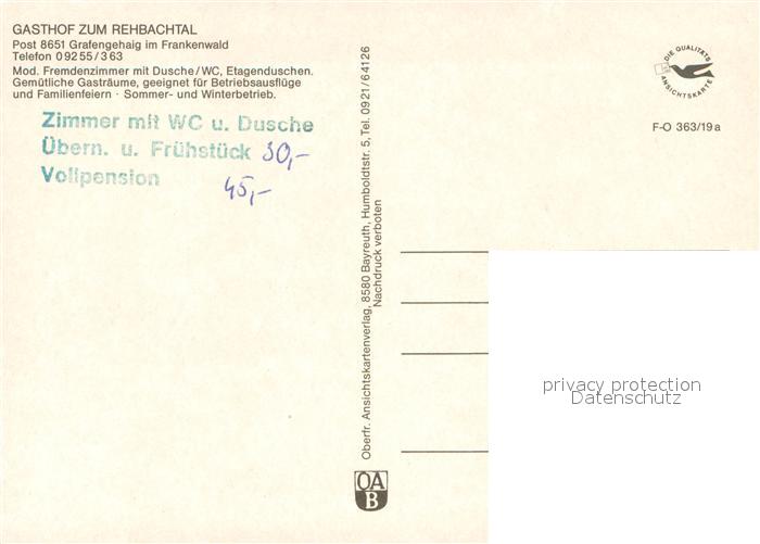 73658630 Grafengehaig Gasthof Zum Rehbachtal Restaurant Fremdenzimmer postalisch nicht gelaufen Erhaltung siehe scans [FriedD77] KatCode: 11110009477117