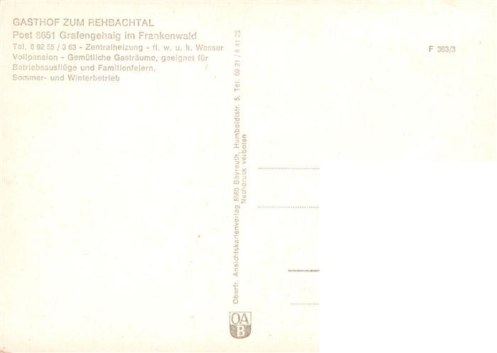 73941258 Grafengehaig Gasthof zum Rehbachtal Waldpartie Bach Reh postalisch nicht gelaufen Erhaltung siehe scans [FriedD77] KatCode: 11110009477117