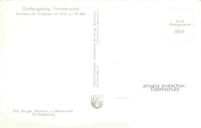 74043826 Grafengehaig Kulmbach Bayern Brunnen am Ortsplatz mit Blick zur Kirche postalisch nicht gelaufen Erhaltung siehe scans [WerneD78] KatCode: 11110009477117