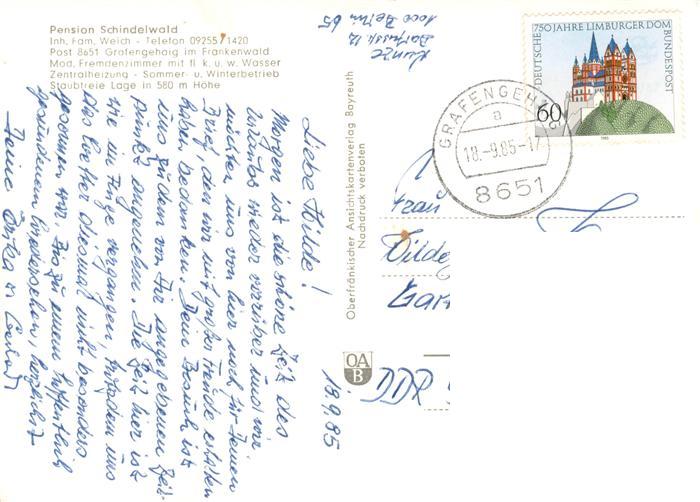 73887219 alte Postkarte Grafengehaig Steinachklamm Pension Schindelwald Ortsansicht Brunnen Kirche Rehbachtal postalisch gelaufen Erhaltung siehe scans [WerneD78] KatCode: 11110009477117