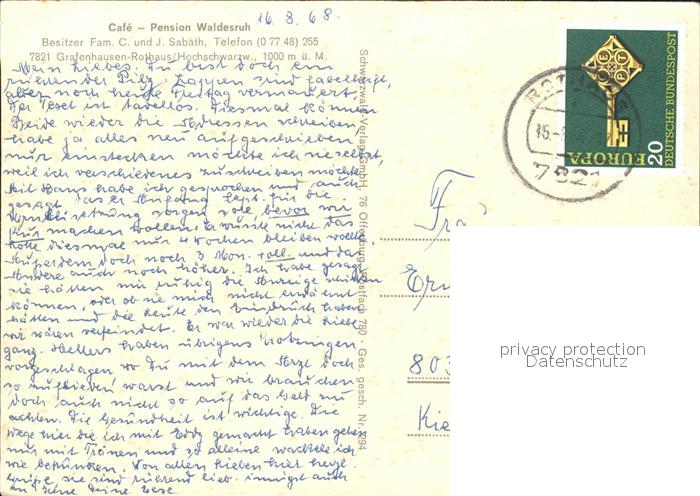 71866447 alte Postkarte Grafenhausen Schwarzwald Cafe-Pension Waldesruh postalisch gelaufen Erhaltung siehe scans KatCode: 11110008337039
