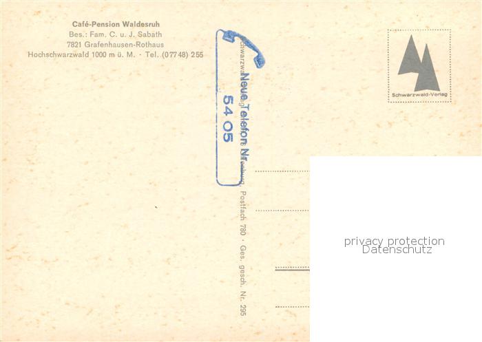 73734147 Grafenhausen Schwarzwald Cafe-Pension Waldesruh postalisch nicht gelaufen Erhaltung siehe scans [LiesaD40] KatCode: 11110008337039