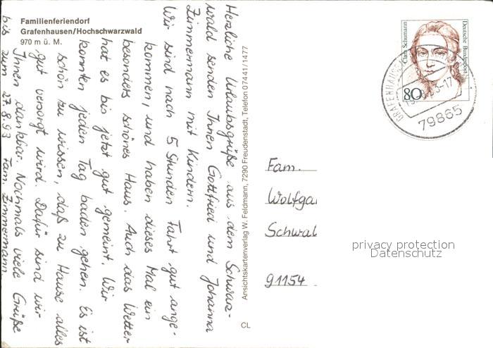 72279885 alte Postkarte Grafenhausen Schwarzwald Familienferiendorf Schwarzwaldhaus Fliegeraufnahme postalisch gelaufen Erhaltung siehe scans KatCode: 11110008337039