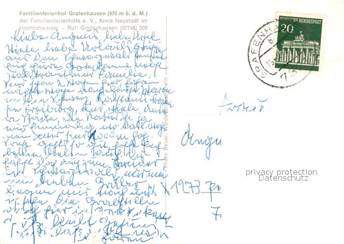 73163823 alte Postkarte Grafenhausen Schwarzwald Familienferienhof postalisch gelaufen Erhaltung siehe scans [WerneD78] KatCode: 11110008337039