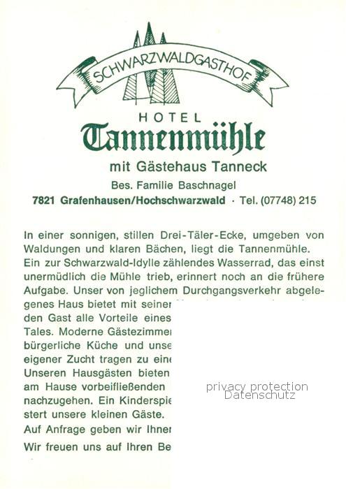 73311937 Grafenhausen Schwarzwald Gasthaus Hotel Tannenmuehle postalisch nicht gelaufen Werbekarte (keine Postkarte) Erhaltung siehe scans [KathaD81] KatCode: 11110008337039