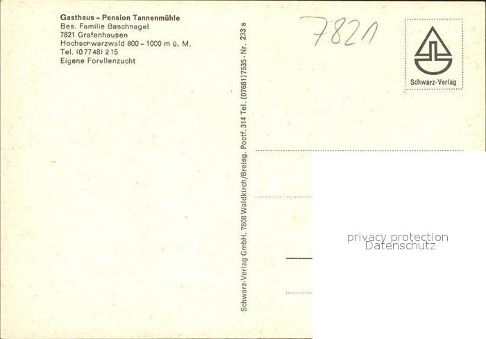 72420507 Grafenhausen Schwarzwald Gasthaus Pension Tannenmuehle postalisch nicht gelaufen Erhaltung siehe scans KatCode: 11110008337039