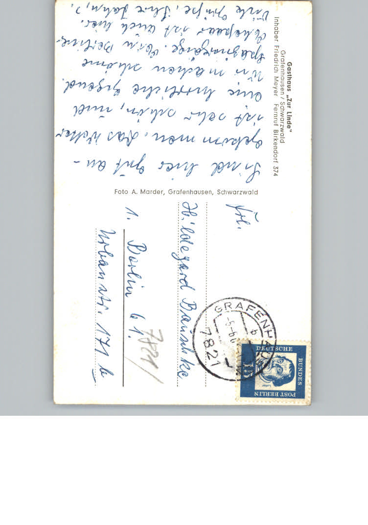 31154046 Grafenhausen Schwarzwald Gasthaus zur Linde postalisch nicht gelaufen KatCode: 11110008337039