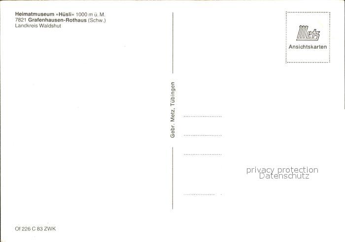 72376648 Grafenhausen Schwarzwald Heimatmuseum Huesli postalisch nicht gelaufen Erhaltung siehe scans KatCode: 11110008337039