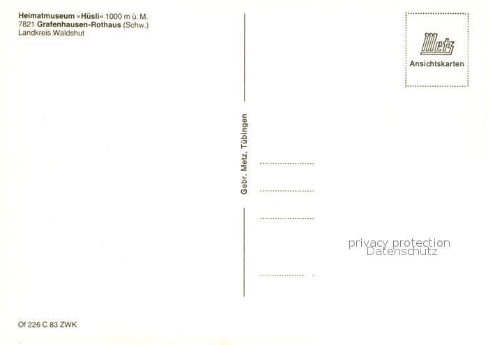 73311936 Grafenhausen Schwarzwald Heimatmuseum Huesli postalisch nicht gelaufen Erhaltung siehe scans [KathaD81] KatCode: 11110008337039