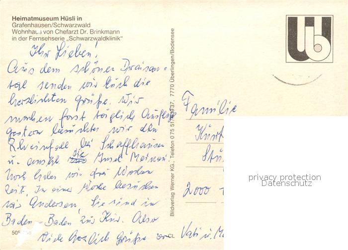 73133573 Grafenhausen Schwarzwald Heimatmuseum Huesli postalisch nicht gelaufen Erhaltung siehe scans [NatalD47] KatCode: 11110008337039