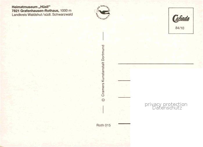 72865004 Grafenhausen Schwarzwald Heimatmuseum Huesli postalisch nicht gelaufen Erhaltung siehe scans [LiesaD40] KatCode: 11110008337039