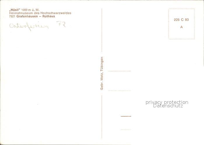 72323746 Grafenhausen Schwarzwald Huesli Heimatmuseum postalisch nicht gelaufen Erhaltung siehe scans KatCode: 11110008337039