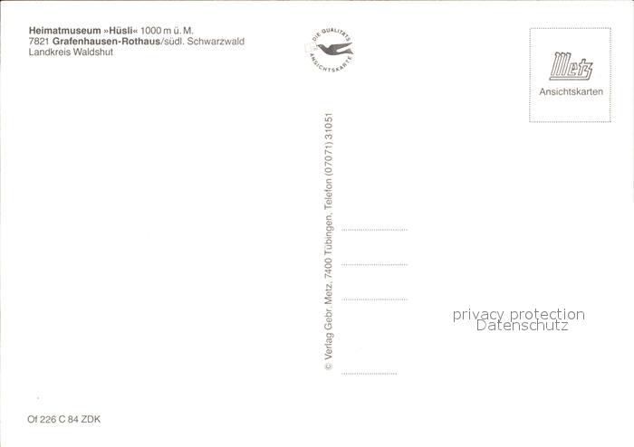 72455110 Grafenhausen Schwarzwald Rothaus Heimatmuseum Huesli postalisch nicht gelaufen Erhaltung siehe scans KatCode: 11110008337039