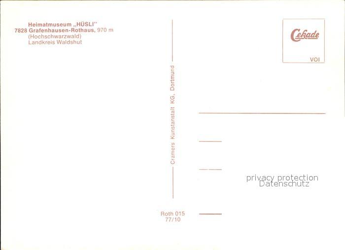 72599525 Grafenhausen Schwarzwald Rothaus Heimatmuseum Huesli postalisch nicht gelaufen Erhaltung siehe scans [LiesaD40] KatCode: 11110008337039