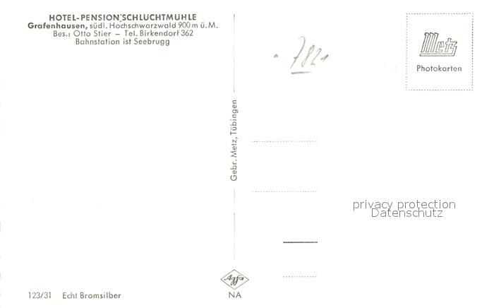42941067 Grafenhausen Schwarzwald Schluechtmuehle postalisch nicht gelaufen Erhaltung siehe scans [AndreD76] KatCode: 11110008337039