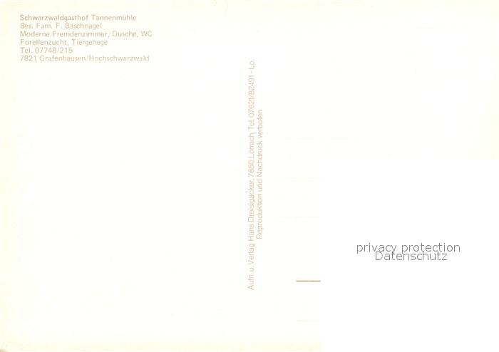 72969822 Grafenhausen Schwarzwald Schwarzwaldgasthof Tannenmuehle postalisch nicht gelaufen Erhaltung siehe scans [LiesaD40] KatCode: 11110008337039