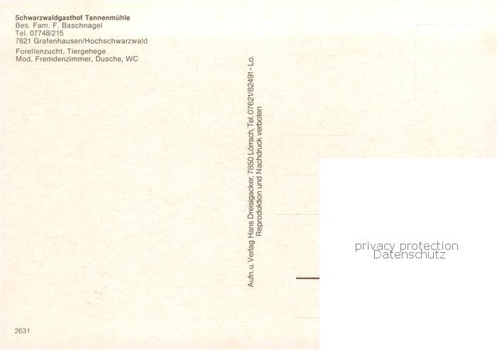73788051 Grafenhausen Schwarzwald Schwarzwaldgasthof Tannenmuehle postalisch nicht gelaufen Erhaltung siehe scans [FriedD77] KatCode: 11110008337039