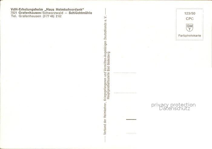 71908895 Grafenhausen Schwarzwald VdH Erholungsheim Haus Heilmkehrerdank postalisch nicht gelaufen KatCode: 11110008337039
