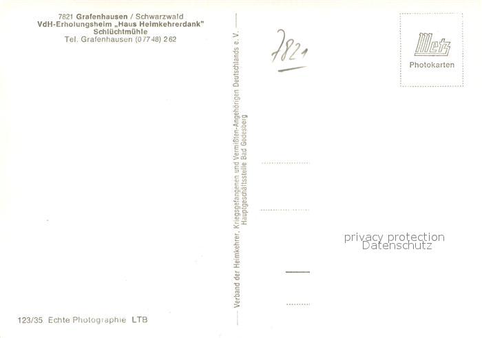 73710198 Grafenhausen Schwarzwald VdH Erholungsheim Haus Heimkehrerdank Schluechtmuehle postalisch nicht gelaufen Erhaltung siehe scans [FriedD77] KatCode: 11110008337039