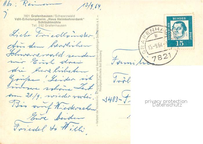73687720 alte Postkarte Grafenhausen Schwarzwald VdH Erholungsheim Haus Heimkehrerdank Schuechtmuehle postalisch gelaufen Erhaltung siehe scans [FriedD77] KatCode: 11110008337039