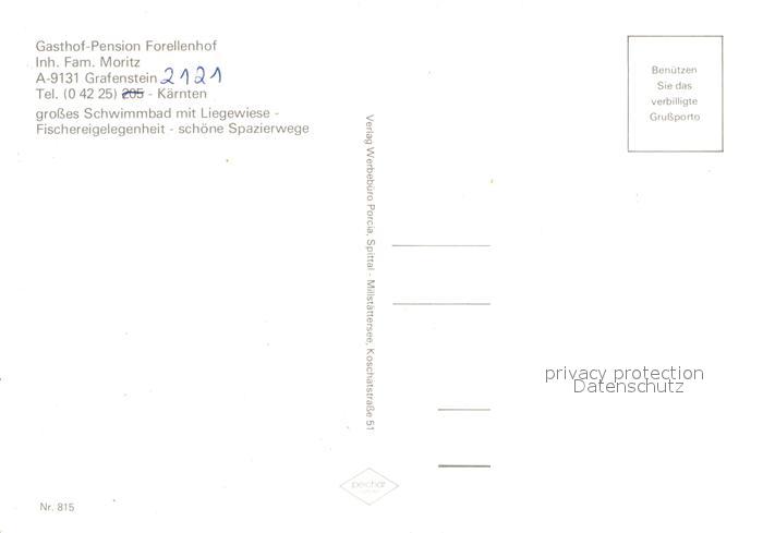 12973072 Grafenstein Kaernten Gasthof Forellenhof postalisch nicht gelaufen Erhaltung siehe scans [NatalD47] KatCode: 11390211020409