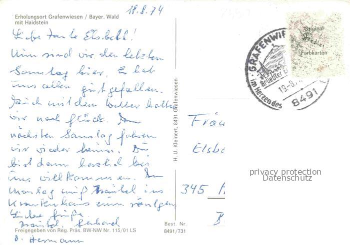 74049707 alte Postkarte Grafenwiesen Cham Bayern Panorama Erholungsort mit Haidstein Freibad postalisch gelaufen Fliegeraufnahme Erhaltung siehe scans [FriedD77] KatCode: 11110009372130