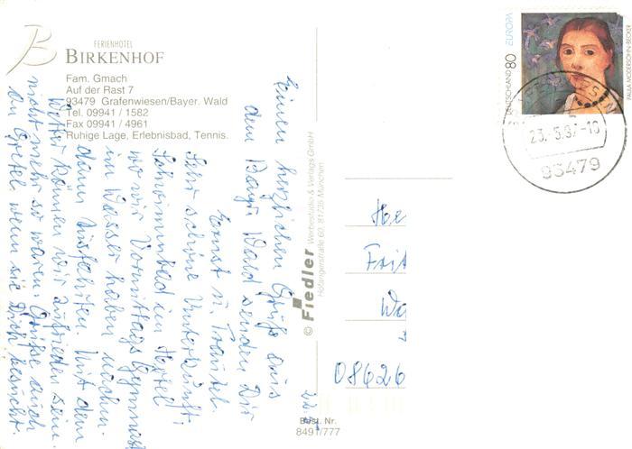 73879218 alte Postkarte Grafenwiesen Ferienhotel Birkenhof Gastraeume Bar Fliegeraufnahme postalisch gelaufen Erhaltung siehe scans [WerneD78] KatCode: 11110009372130