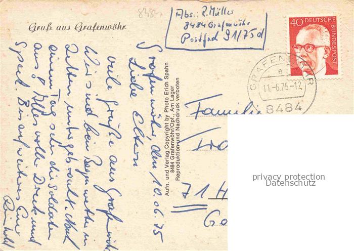 74049390 alte Postkarte Grafenwoehr Parkanlagen Stadtweiher postalisch gelaufen Erhaltung siehe scans [FriedD77] KatCode: 11110009374124