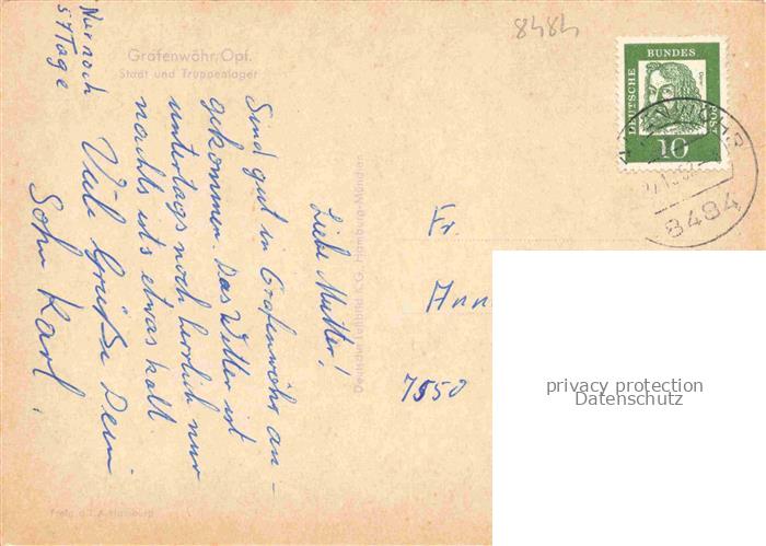 74049401 alte Postkarte Grafenwoehr Stadt und Truppenuebungsplatz postalisch gelaufen Fliegeraufnahme Erhaltung siehe scans [FriedD77] KatCode: 11110009374124