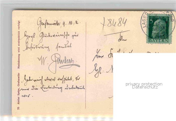 42671040 alte Postkarte Grafenwoehr Truppenuebungsplatz Arbeitskommando Teilansicht Militaergasthof Militaerforsthaus Wasserturm postalisch gelaufen Erhaltung siehe scans [WerneD78] KatCode: 11110009374124