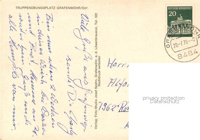 73780600 alte Postkarte Grafenwoehr Truppenuebungsplatz Eingang postalisch gelaufen Erhaltung siehe scans [WerneD78] KatCode: 11110009374124
