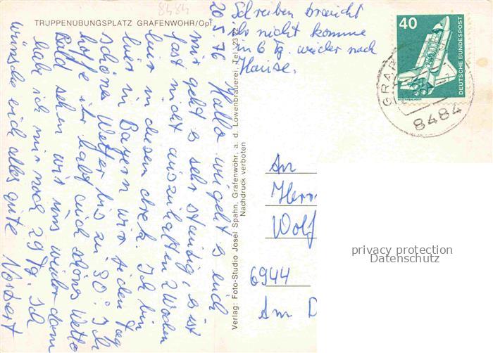 74049350 alte Postkarte Grafenwoehr Truppenuebungsplatz Lagereingang Kanone Wasserturm U.S. Army Hauptquartier postalisch gelaufen Erhaltung siehe scans [FriedD77] KatCode: 11110009374124