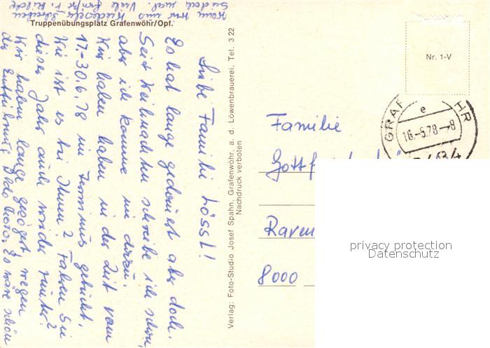 73125162 alte Postkarte Grafenwoehr Truppenuebungsplatz postalisch gelaufen Erhaltung siehe scans [PaolaD17] KatCode: 11110009374124